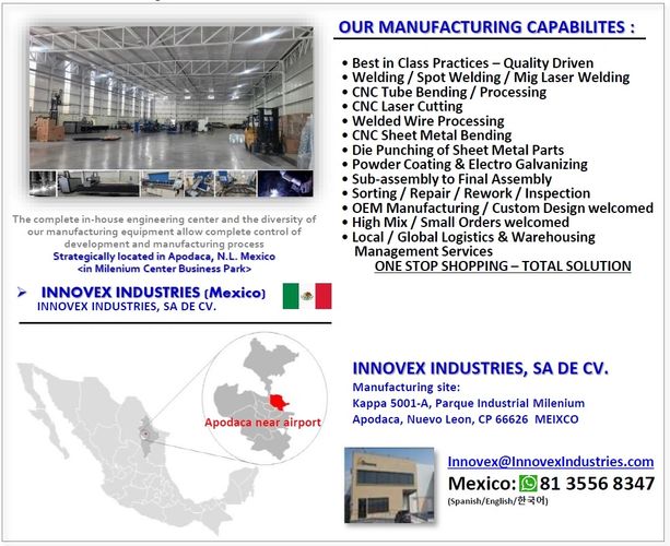 WhatsApp Tel: +(52) 81 3556 8347 (English/Spanish/한국어) Email: Innovex@InnovexIndustries.com